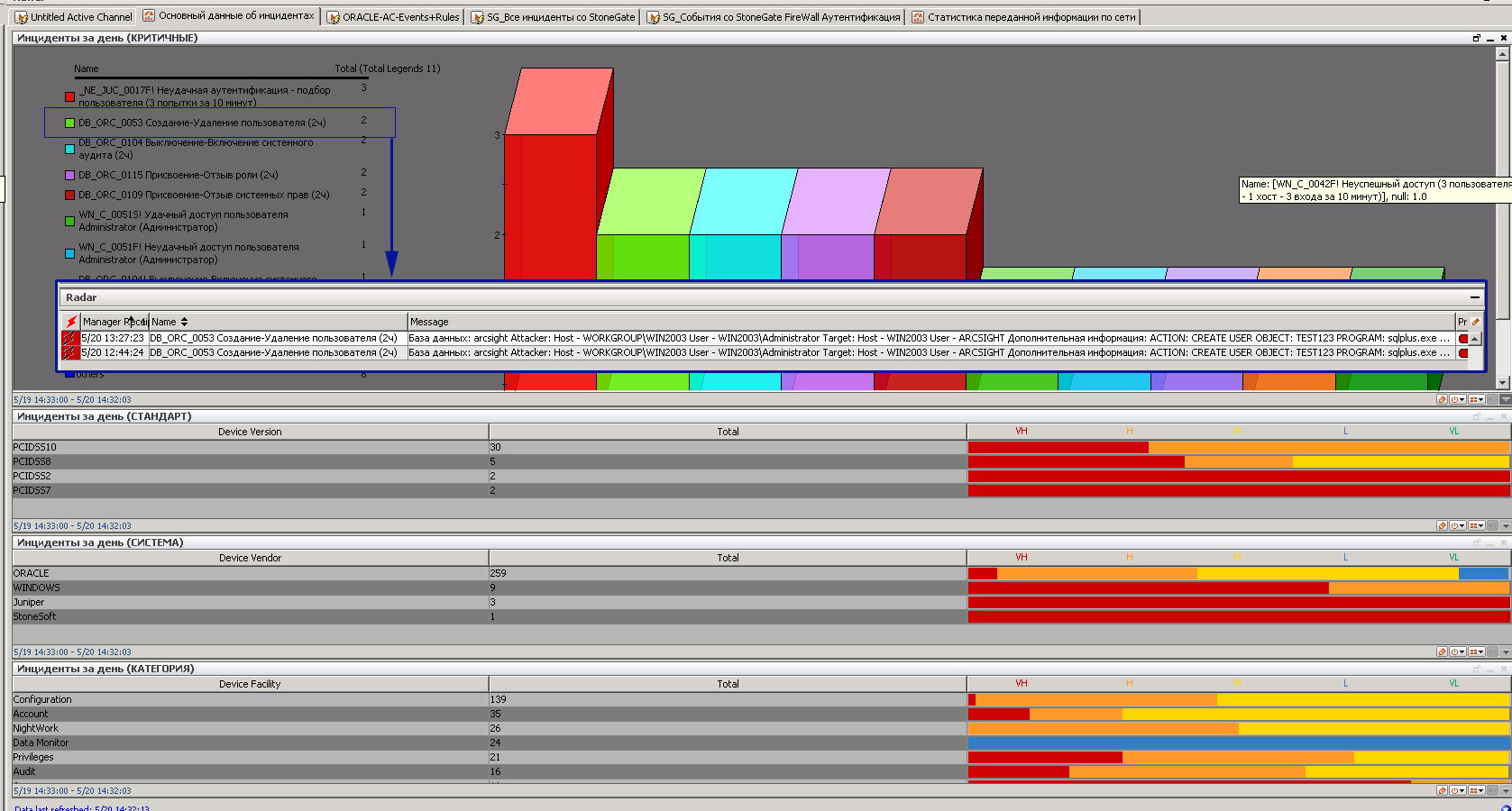 • Неудачное редактирование данных в критичных таблицах, используя нелегальное ПО • Удачный останов критичных сервисов • Удачный запуск запрещенных программ |