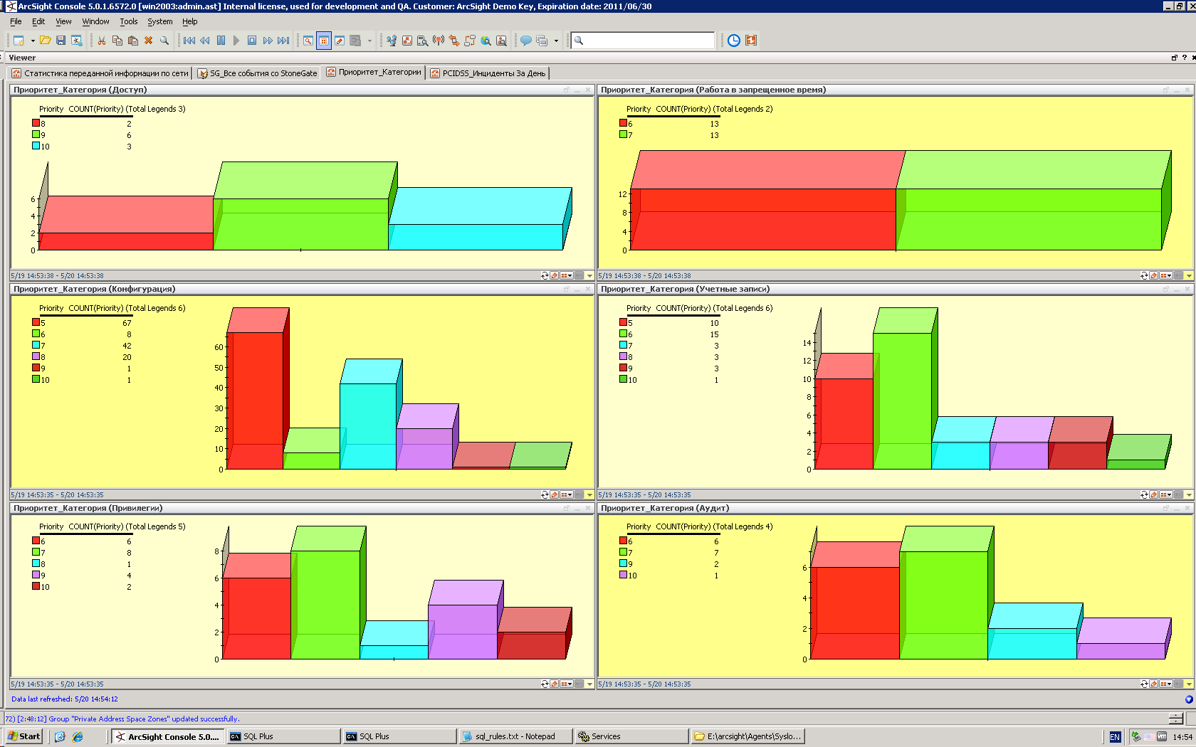 В базовую поставку Arcsight входит менее 100 правил, причем большинство из них относится к событиям, зарегистрированным на сетевых устройствах. Отсутствуют правила, относящиеся к событиям мониторинга баз данных, операционных систем, приложений, прикладных программ и т.д.